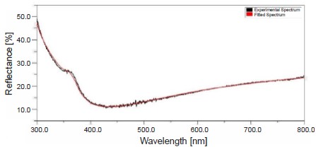 The thickness of the prepared thin films was designated using an FR-pRo-UV/VIS optical reflectometer (Theta-Metrisis SA., Peristeri Greece). The reflected light technique was used for the measurements. Reflectometric measurements are based on the theory of total reflection. This value defines the ratio of reflected light to incident light. A beam of light falling on the sample surface is disturb by reflecting off the upper and lower sides of the thin film. Then, this beam is directed to the CCD matrix by an optical fibre and processed on the computer. In the end, a spectrogram with rectilinear interference oscillations proportional to the thin-film thickness registered on the monitor was obtained. First, the substrate on which natural SiO2 oxides with a thickness of 2 nm were identified was characterised. Their presence in the optical model was considered.